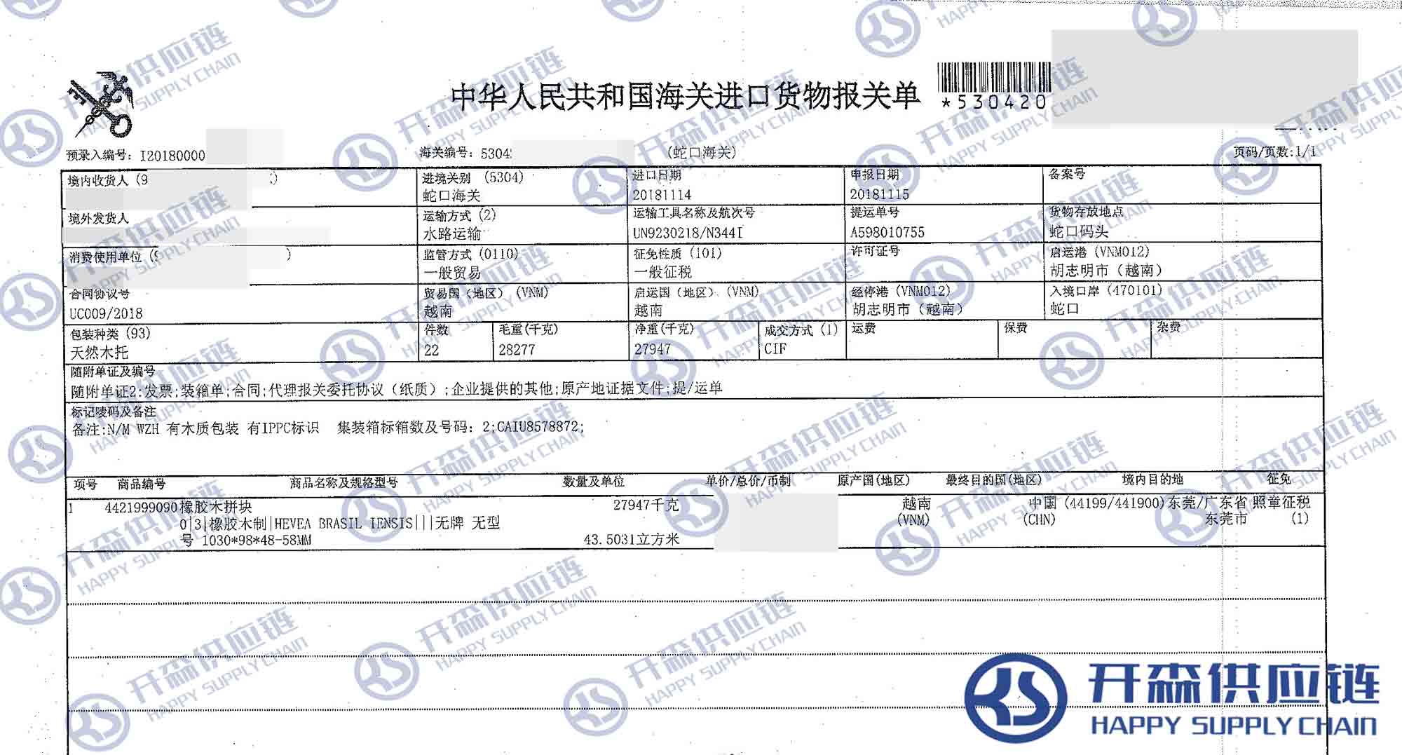 【本文結語】 上述就是越南橡膠木拼塊家具進口報關代理服務【經典案例】的全部內容,希望能對您有所幫助,如有家具進口報關上任何疑問及問題可隨時在線聯系我們或撥打 18002611553,開森供應鏈擁有豐富的家具進口報關操作經驗及案例,10余年進口經驗為您所用,各類進口疑難都能為您一一解答及協助快速處理解決!