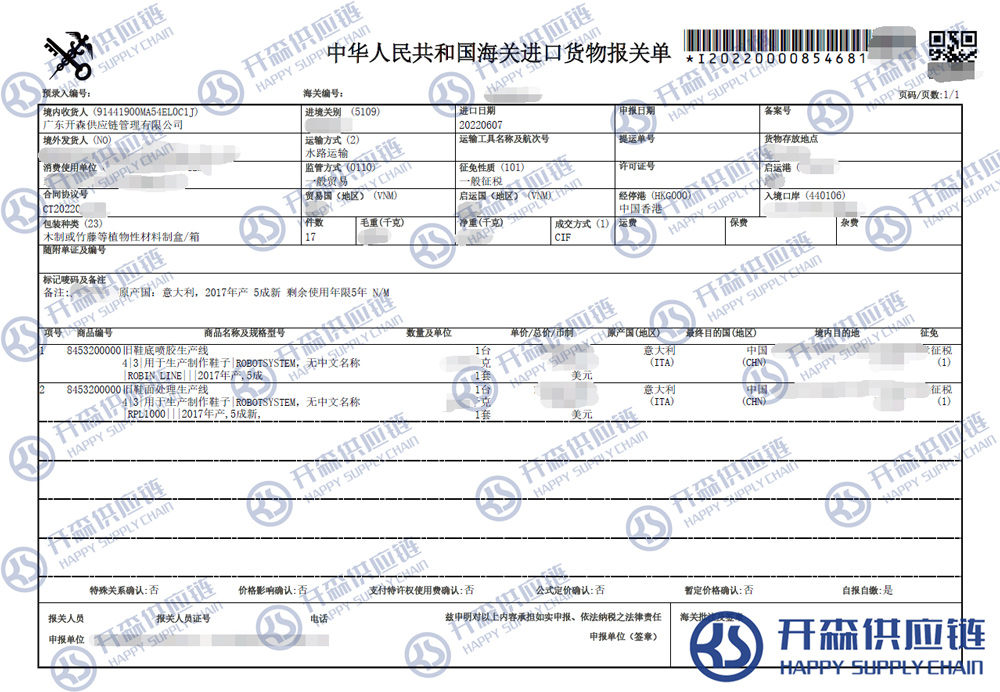 一、二手制鞋生產(chǎn)線設(shè)備進(jìn)口報(bào)關(guān)代理案例詳情