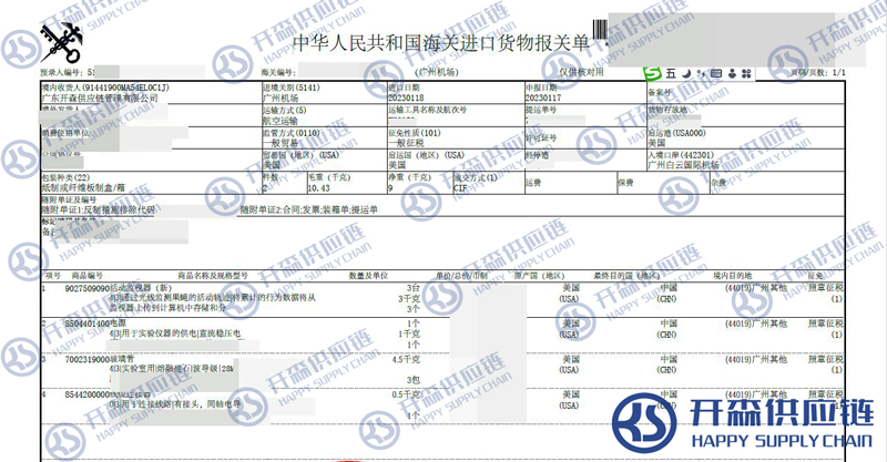 一、測(cè)量系統(tǒng)配件進(jìn)口報(bào)關(guān)代理案例詳情