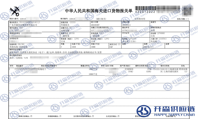 一、日本玫瑰花干進(jìn)口報(bào)關(guān)代理案例詳情