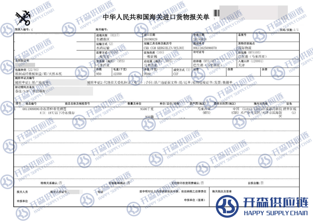 【本文結語】 上述就是天津港馬來西亞冷凍榴蓮進口報關代理服務【清關案例】的全部內容,希望能對您有所幫助,如有榴蓮進口報關上任何疑問及問題可隨時在線聯系我們或撥打 18002611553,開森供應鏈擁有豐富的榴蓮進口報關操作經驗及案例,10余年進口經驗為您所用,各類進口疑難都能為您一一解答及協助快速處理解決!