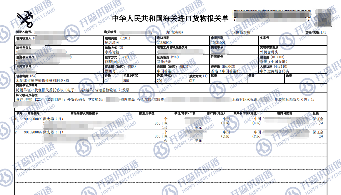 原文標題:廣州港舊激光器退運返修報關代理服務【清關案例】
